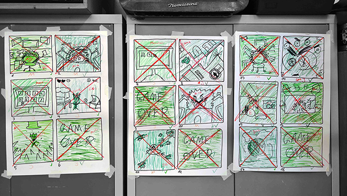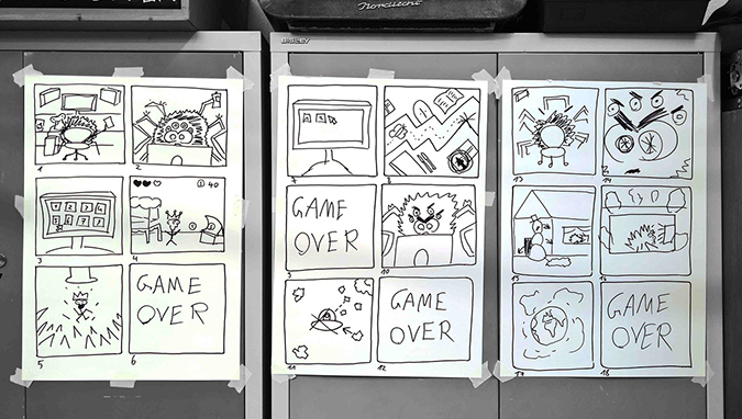 Jedes Mal, wenn sich aufgrund der Geschichte etwas an der Kameraperspektive oder der Einstellungsgröße ändert, wird im Storyboard eine neue Szene gezeichnet: